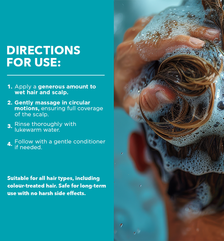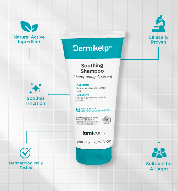 Dermikelp® Soothing Shampoo is specially formulated to provide targeted care for itchy, irritated and sensitive scalps.Powered by the proprietary CEM-K active, this gentle shampoo helps calm scalp discomfort and support balance in scalps prone to flakes, irritation and sensitivity. Suitable for daily use, it cleanses effectively without stripping, leaving the scalp feeling comfortable and hair looking clean and healthy. Dermatologically tested and free from cortisone, coal tar and parabens, Dermikelp® Soothing Shampoo is suitable for all ages and designed for ongoing use as part of a consistent scalp care routine. For best results, use regularly and follow with Dermikelp® Sensitive Scalp Conditioner or Scalp Tonic to support everyday scalp comfort.